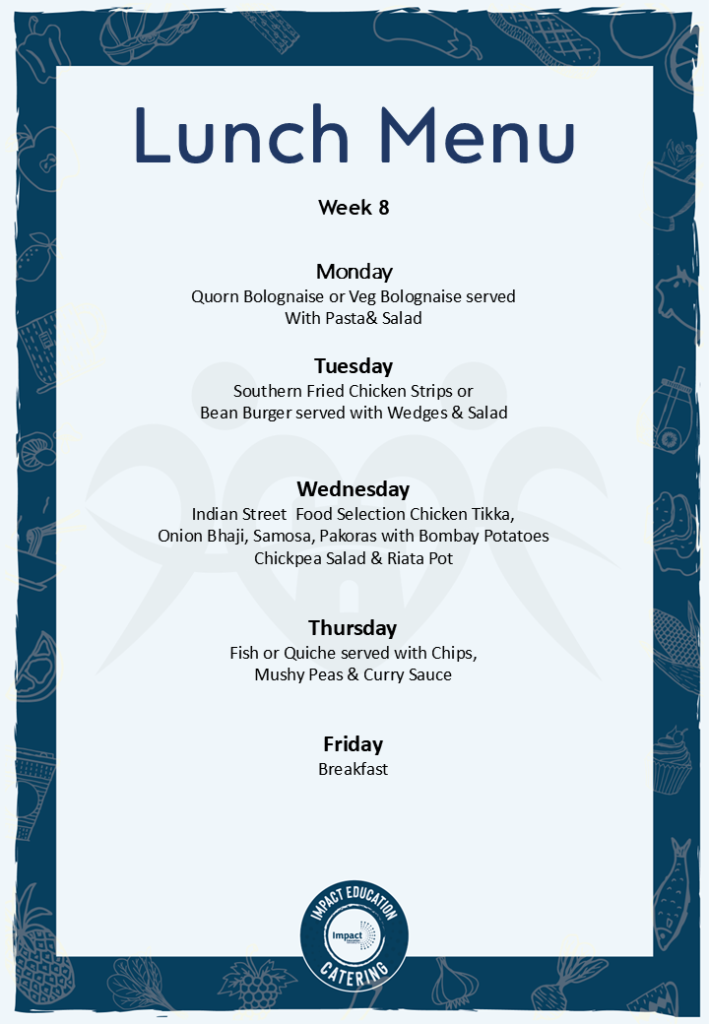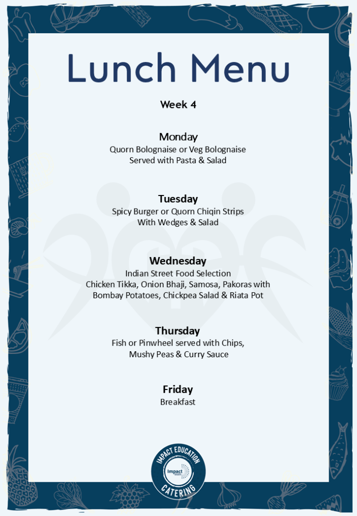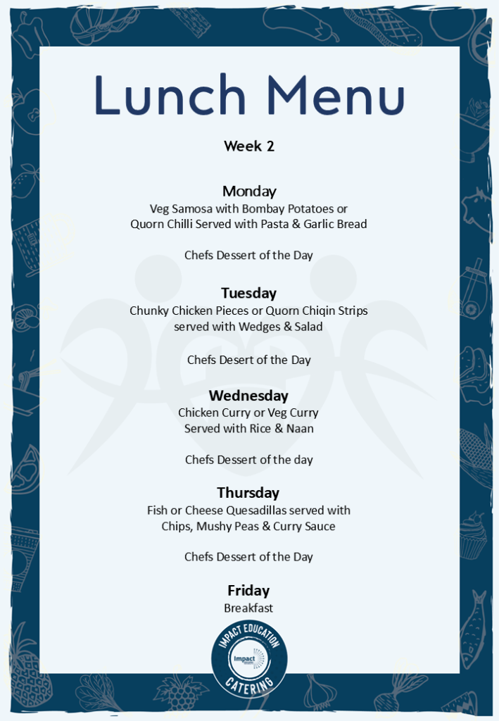 School lunches are freshly prepared onsite by the Impact Education Catering team, who provide delicious, high-quality, nutritious meals across the Trust.